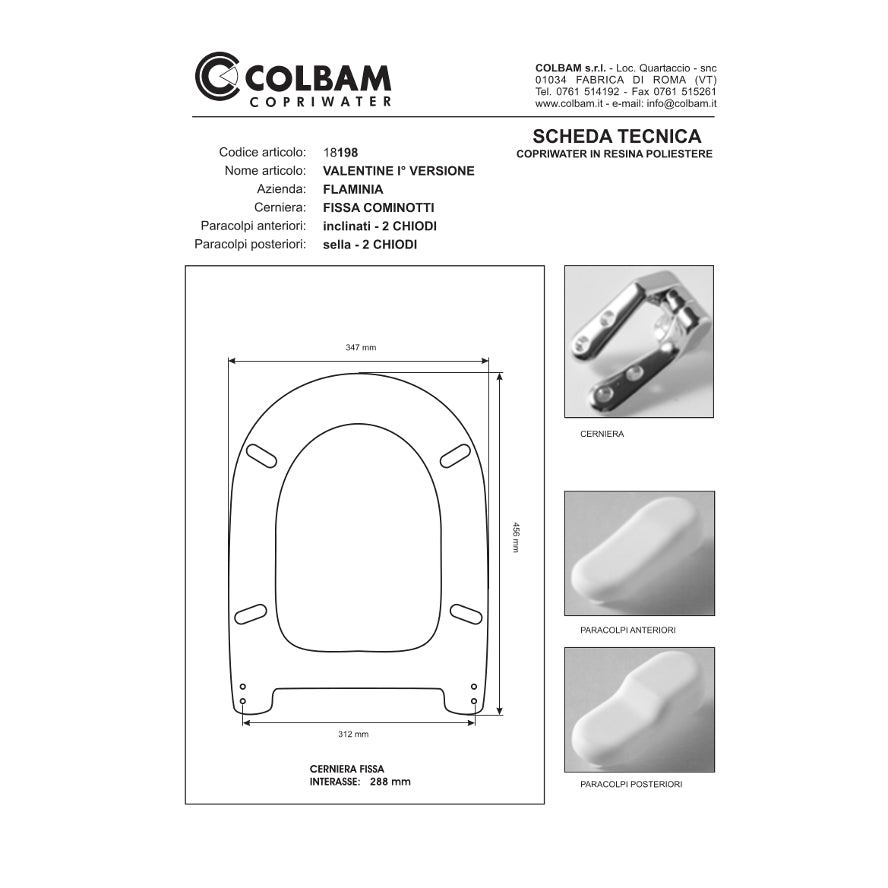 WC-Sitz aus weißem Polyesterharz, Serie Valentine, Version 1 von Flaminia, Länge 45,6 cm, Breite 34,7 cm, Mittenabstand 28,8 cm