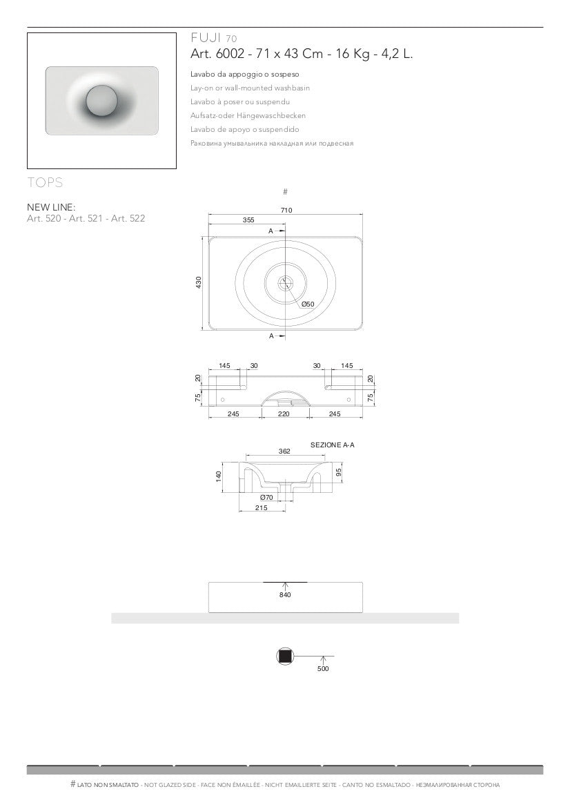 Il lavello Fuji è realizzato in ceramica bianca e presenta forme morbide sia esternamente che internamente alla vasca. Oltre a sostenere può essere installato anche sospeso.