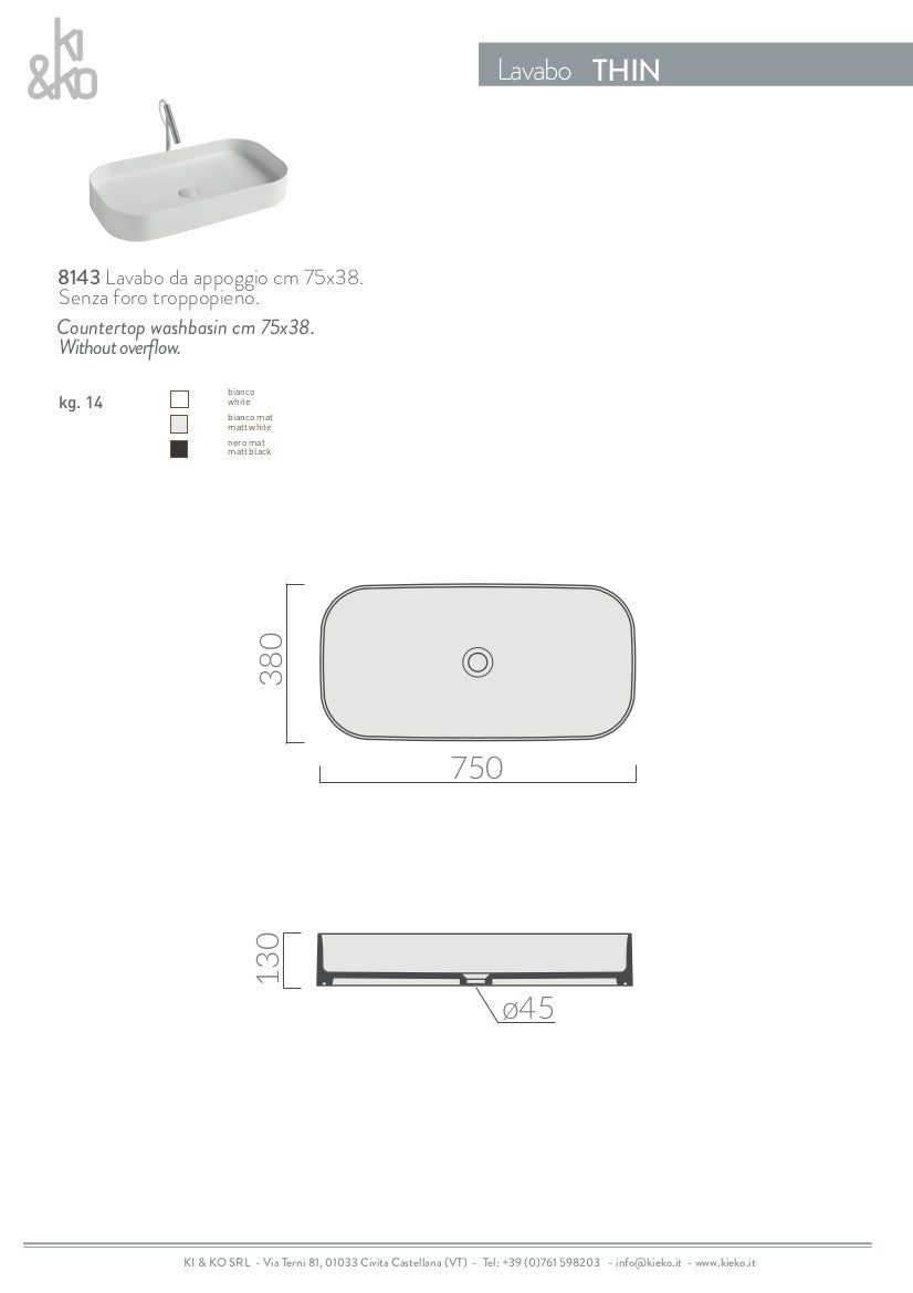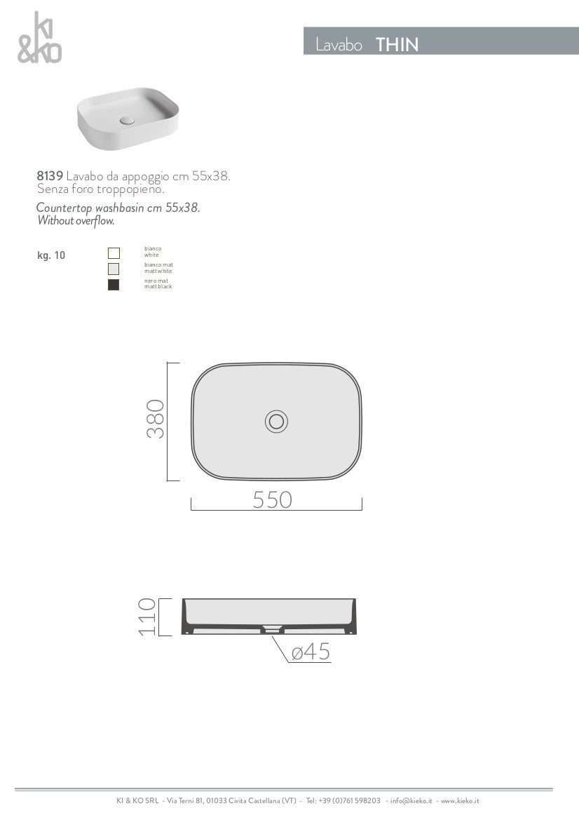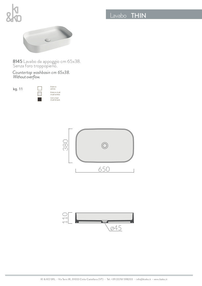 Lavabo in ceramica senza troppopieno. Accessori esclusi.