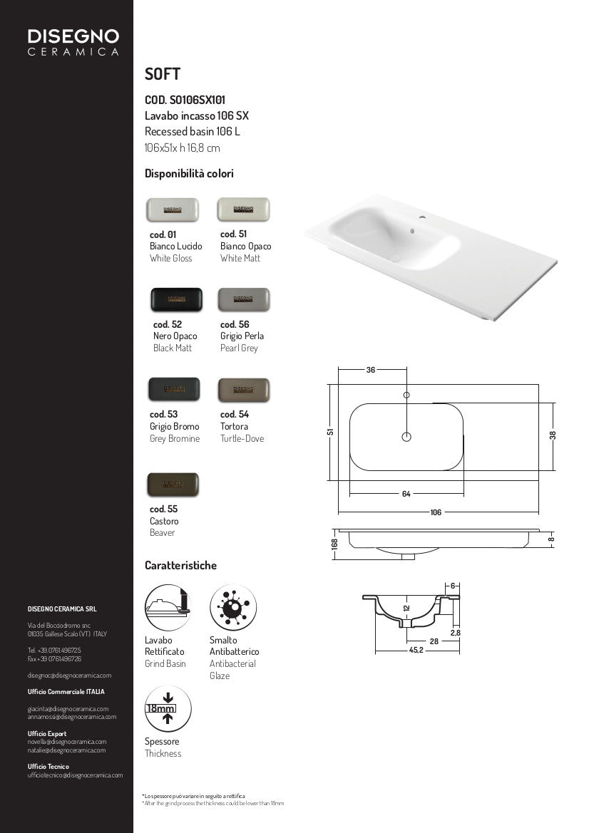 Lavabo encastré avec vasque à gauche 106 x 51 x h 16,8 cm Soft