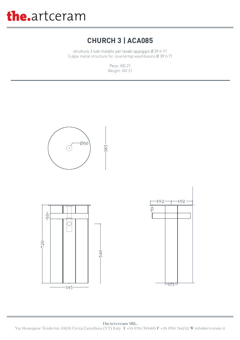 Structure de lavabo ronde avec 3 tubes métalliques Church