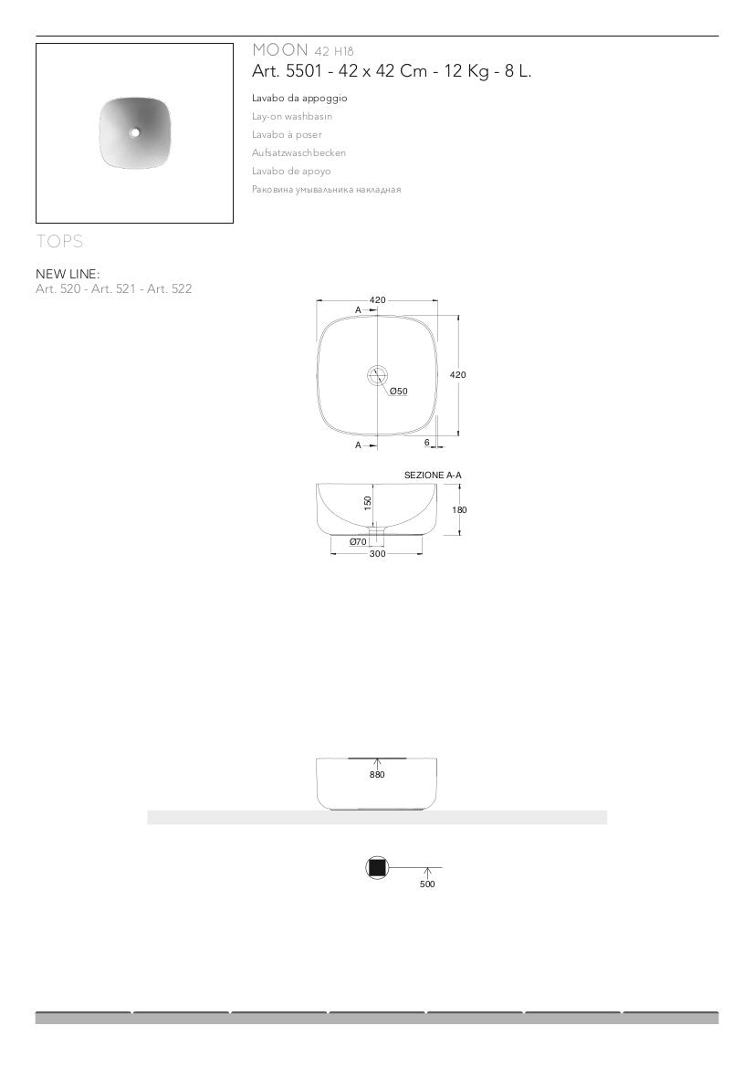 Dimensioni lavabo quadrato 42x42xH18 cm