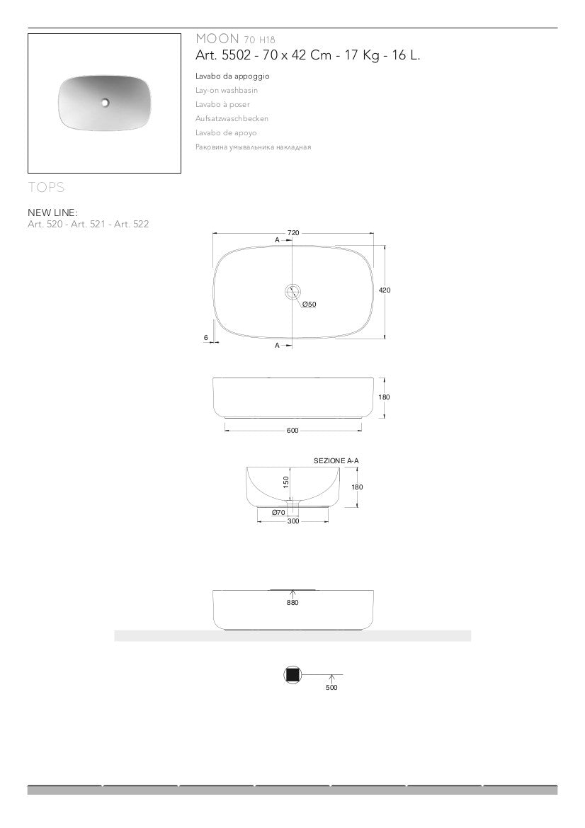 Dimensioni lavabo rettangolare 72x42xH18 cm