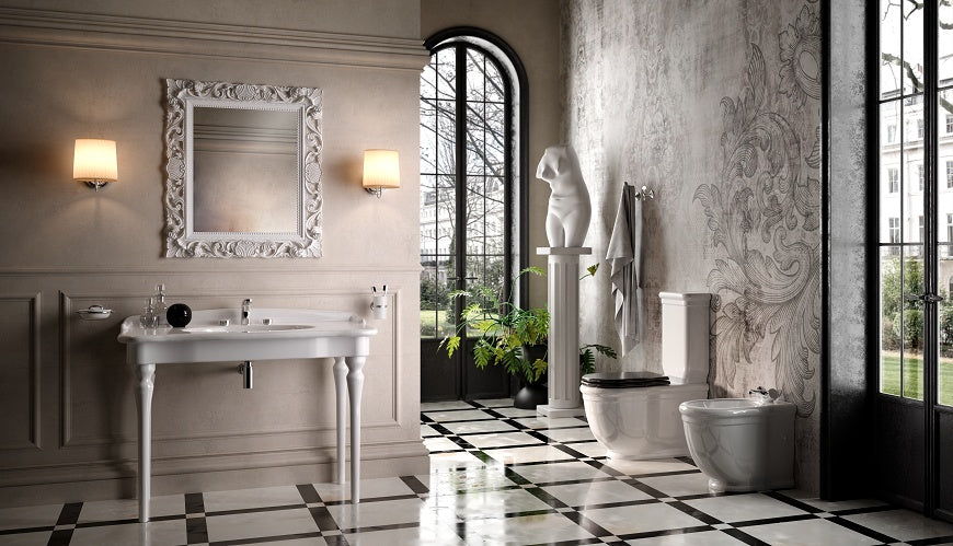 Linee morbide che raccontano la storia di un luogo caldo ed accogliente, profumato e seducente; oggetti che evocano atmosfere ottocento sono i perfetti protagonisti di ambienti classici, e, nello stesso tempo, sono perfettamente inseribili in morbidi contesti contemporanei. Citazioni stilistiche per una serie completa di consolles e lavabi, monoblocco e sanitari raffinati, arricchiti da dettagli pregiati, da accessori coordinati, da complementi d’autore.