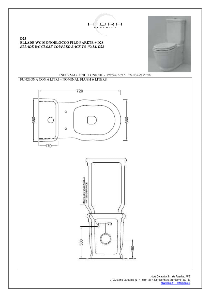Wc monoblocco filomuro traslato + kit fissaggio, cassetta di scarico inclusa. Coprivaso escluso. Meccanismo di scarico escluso.