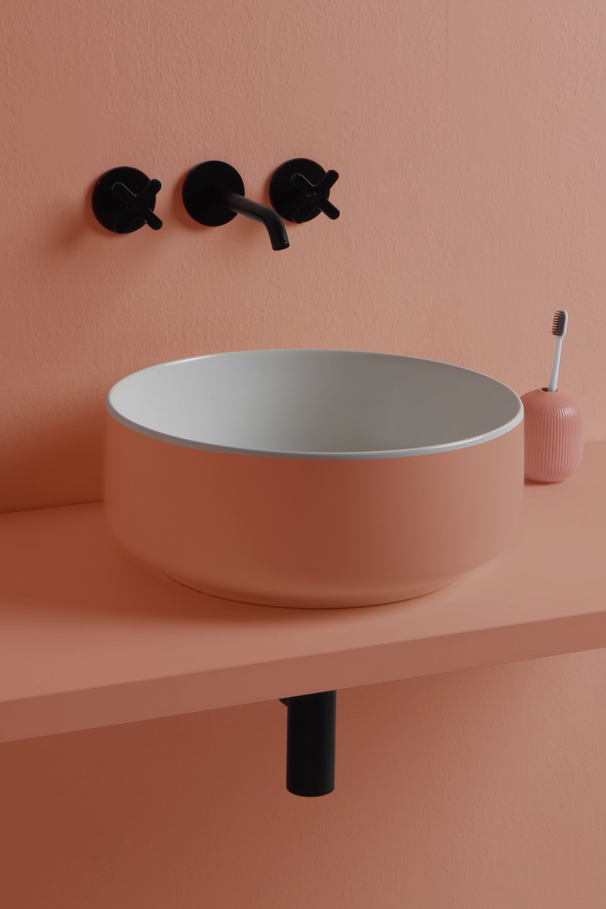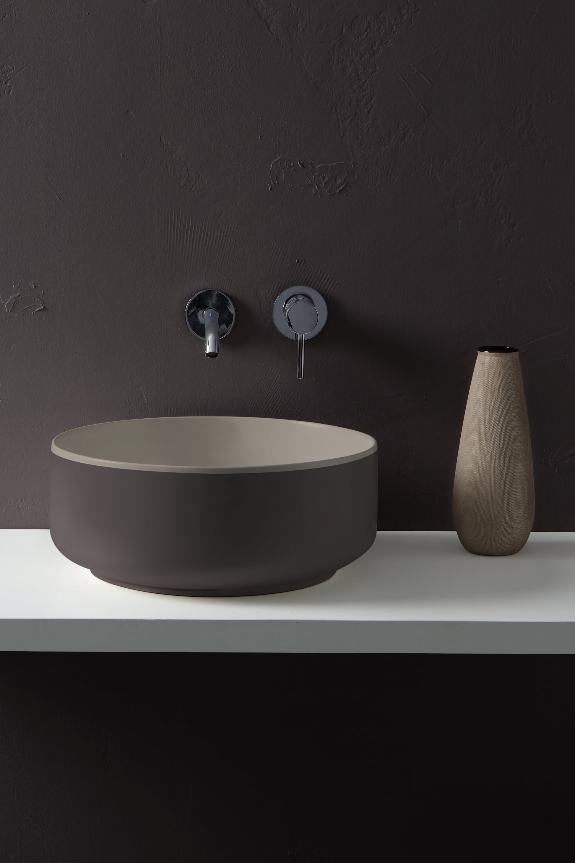Zweifarbiges Keramik-Aufsatzwaschbecken.