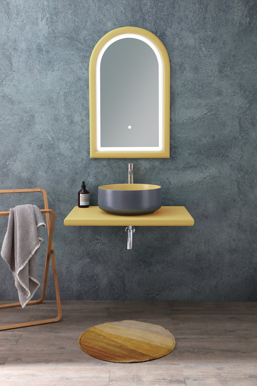 - Rundes Waschbecken 41 x 41 x H 17 cm, Außenfarbe: Bucchero Bis Cosmos Grey Matt, Innenfarbe: Zink Yellow Matt