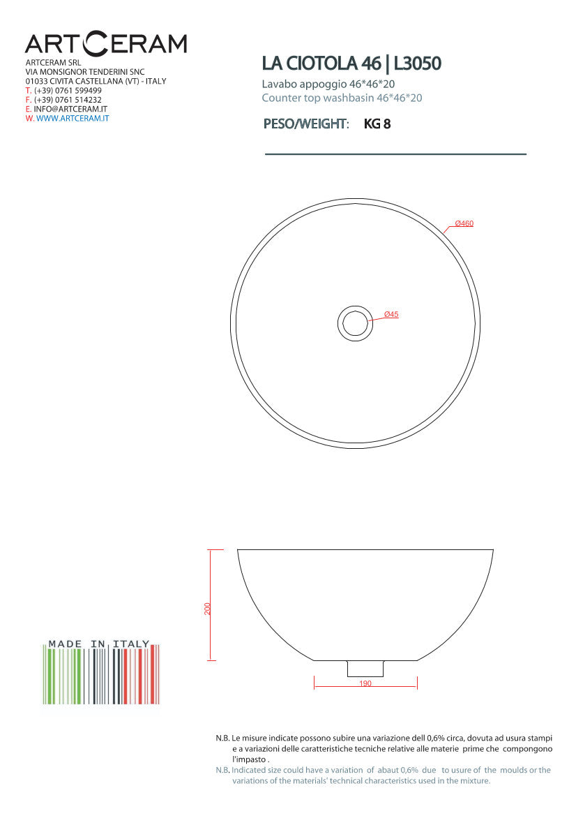 Aufsatzwaschbecken aus Keramik, ohne Hahnloch oder Überlauf, erhältlich in zwei verschiedenen Größen und Formen: rund 46 cm und oval 70x44 cm. Ablauf und Zubehör nicht enthalten.