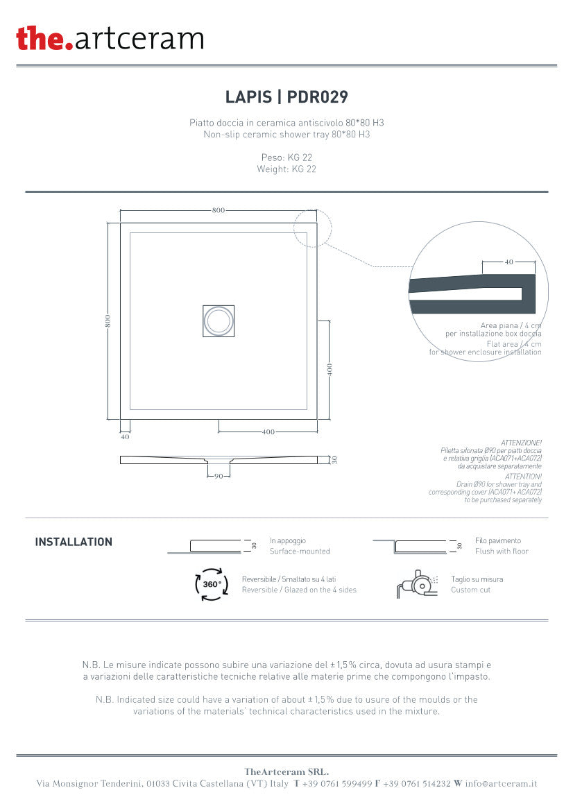 Rutschfeste Duschwanne aus Keramik , Abfluss nicht im Lieferumfang enthalten