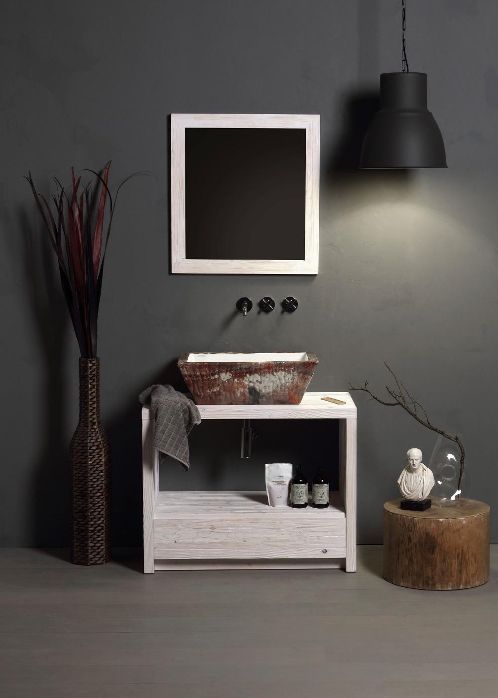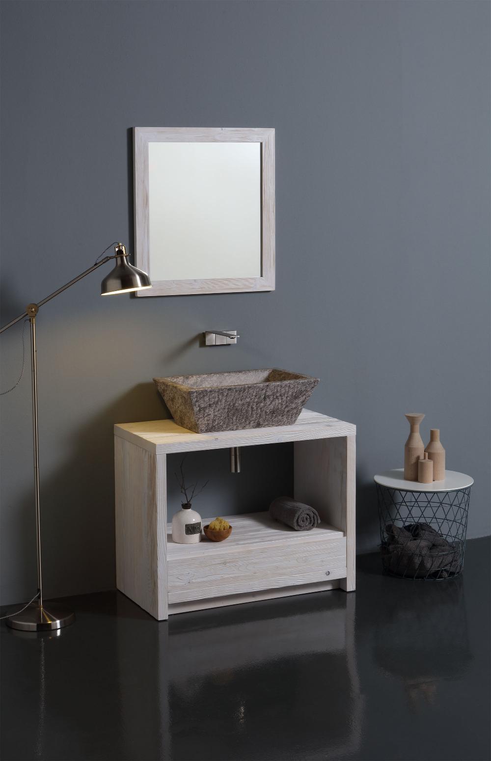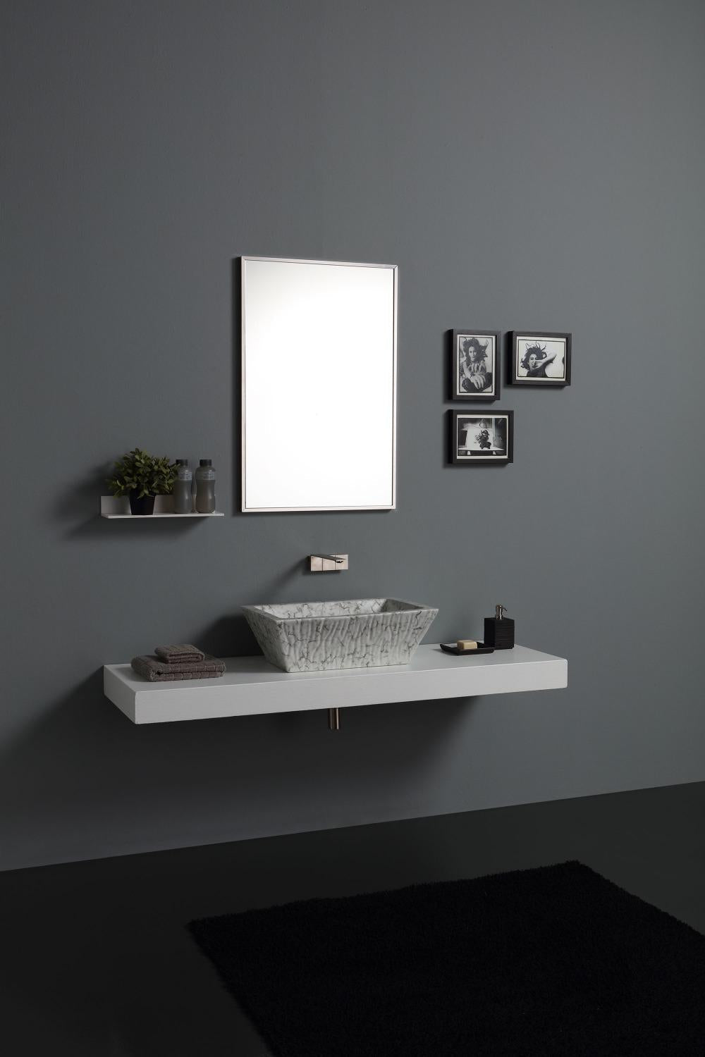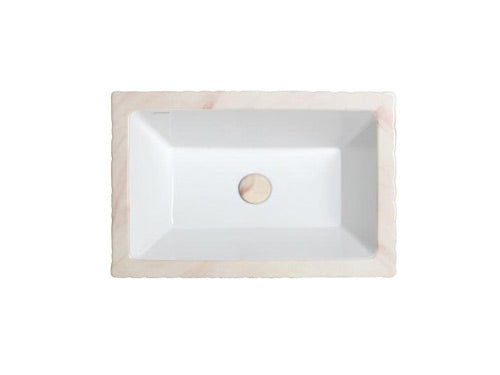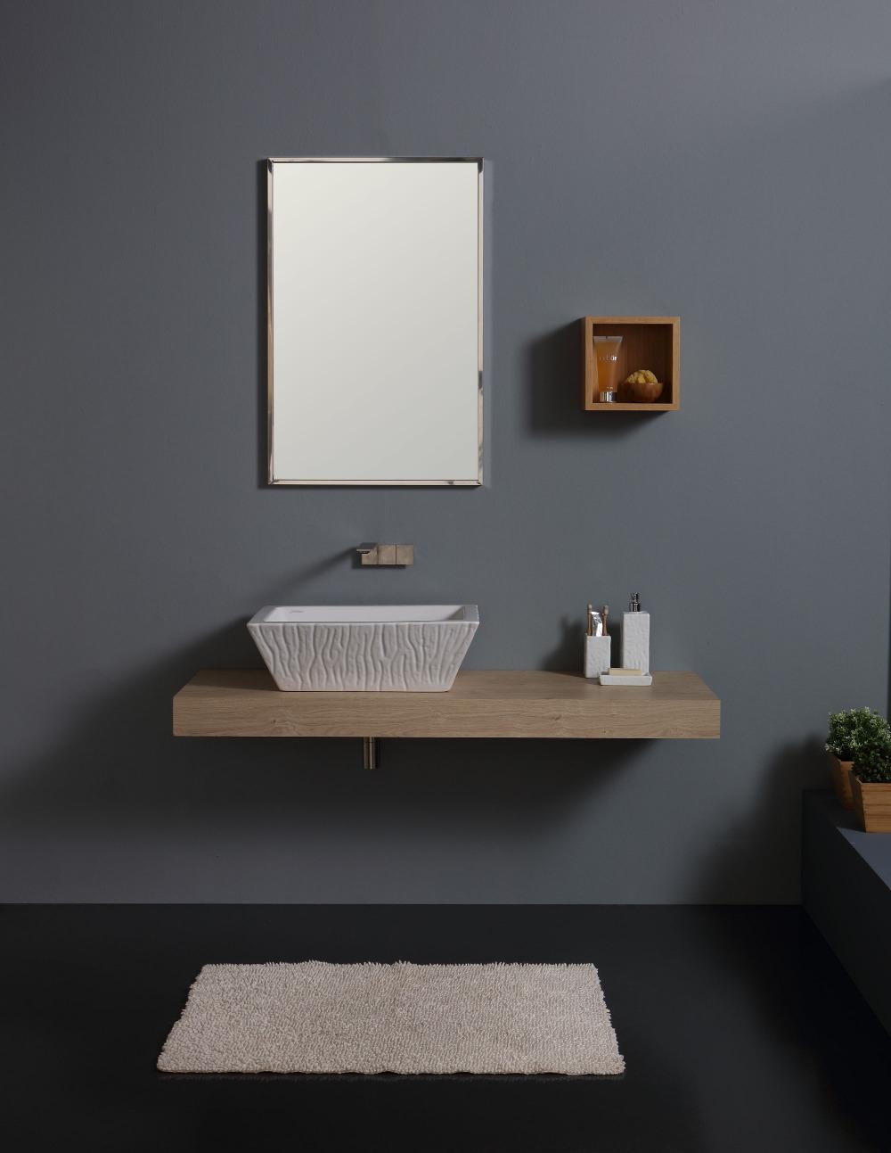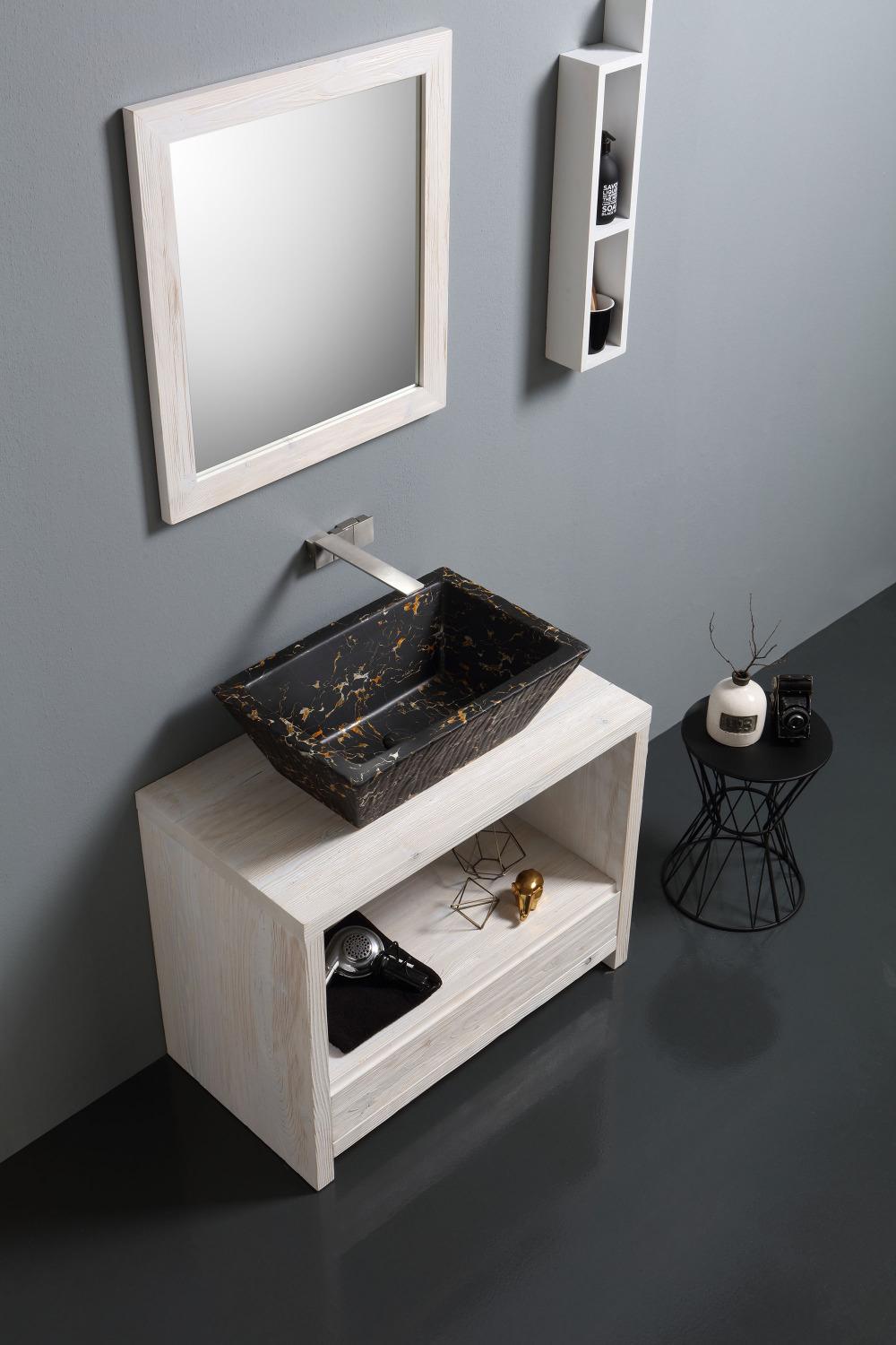Keramikwaschbecken zur Montage oder Wandmontage mit speziellen Verzierungen, die den Effekt von Naturstein erzeugen.