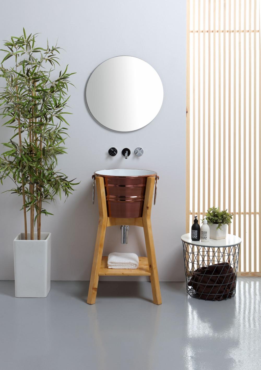 Holzgestell für ein freistehendes Waschbecken, mit oder ohne Ablage, erhältlich in 3 Ausführungen, passend für das Waschbecken Bacile.