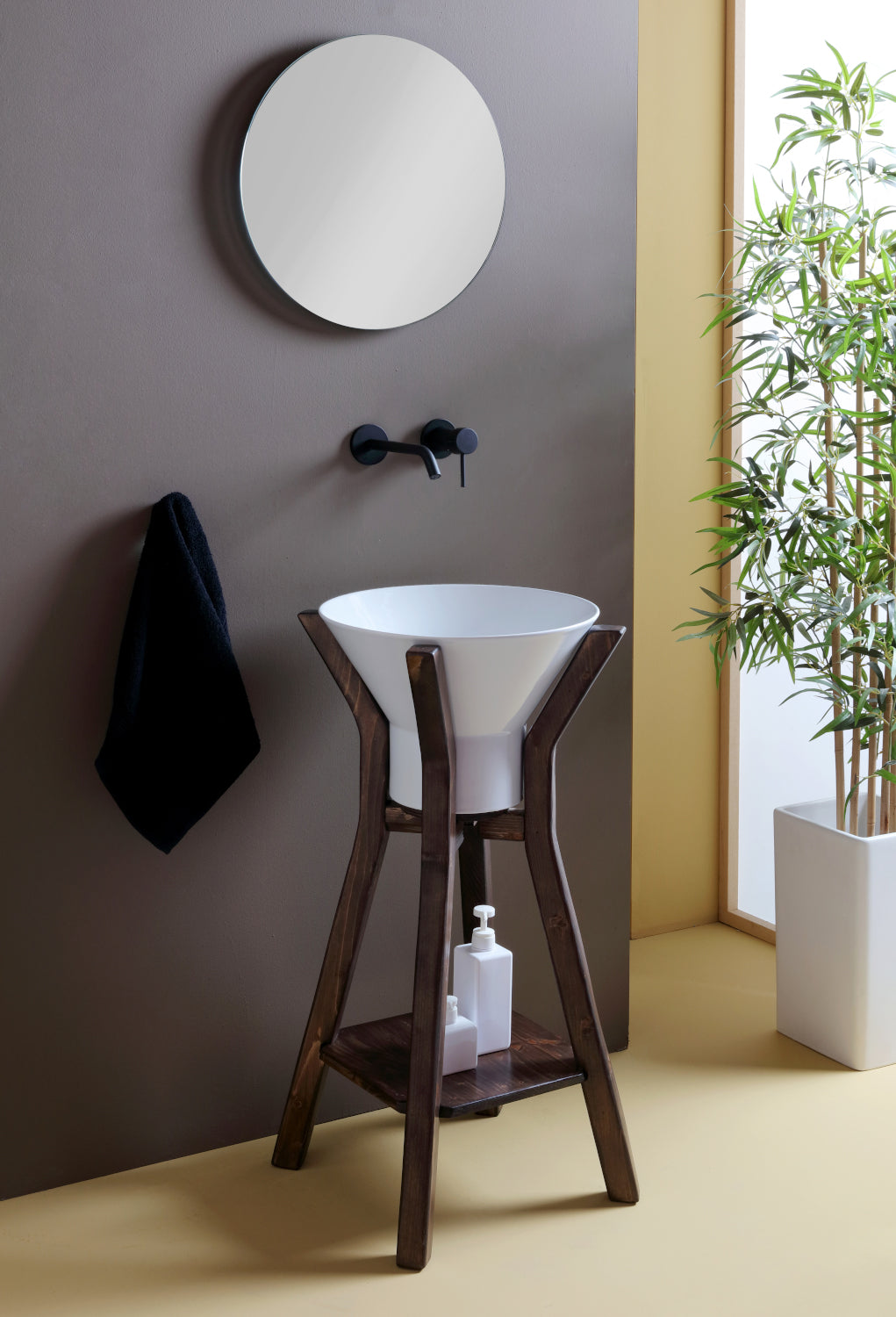 Holzgestell für Waschbecken, freistehend, mit oder ohne Ablage, erhältlich in 3 Ausführungen, für Megafono Waschbecken