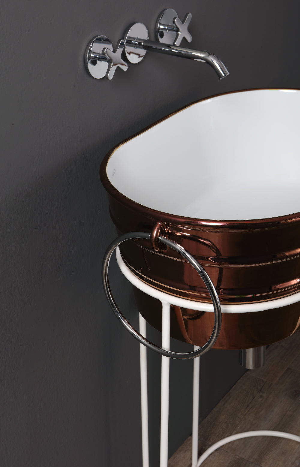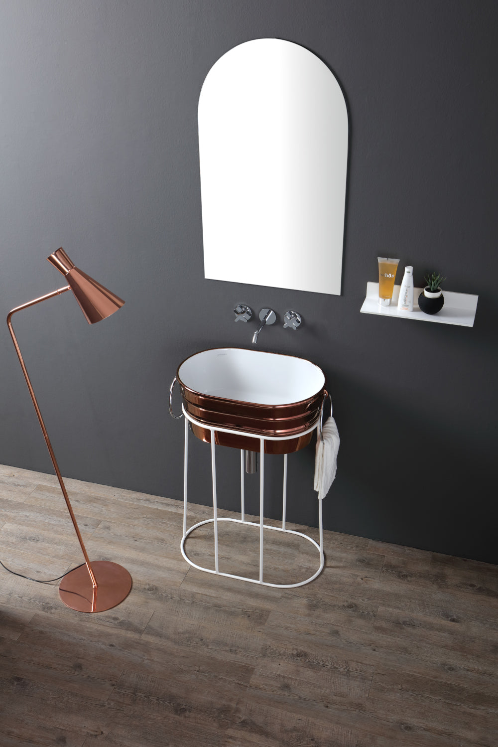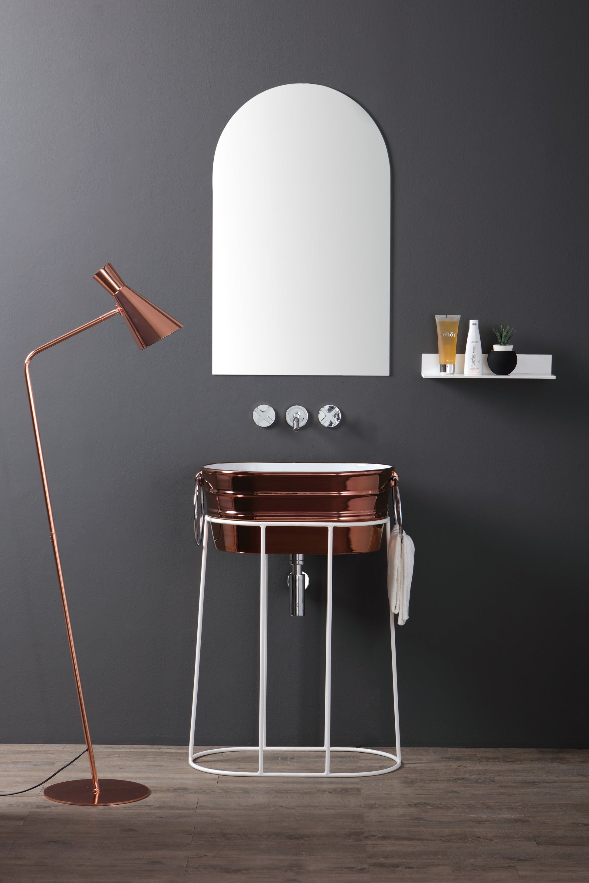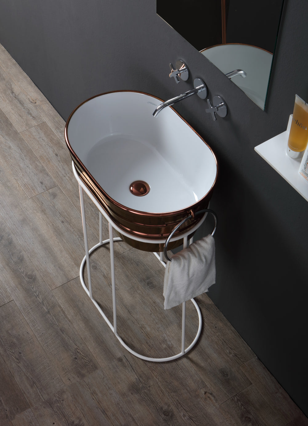 Freistehendes Waschbeckengestell aus Metall, mit oder ohne Ablage, erhältlich in 2 Ausführungen, für das Waschbecken Tinozza.