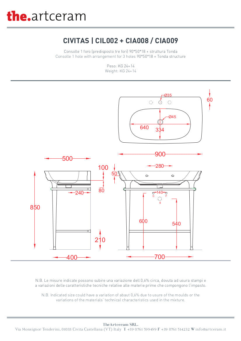 Struttura Tonda con Griglia per Lavabo 90 in metallo della collezione CIVITAS delle dimensioni di 90 X 50.
